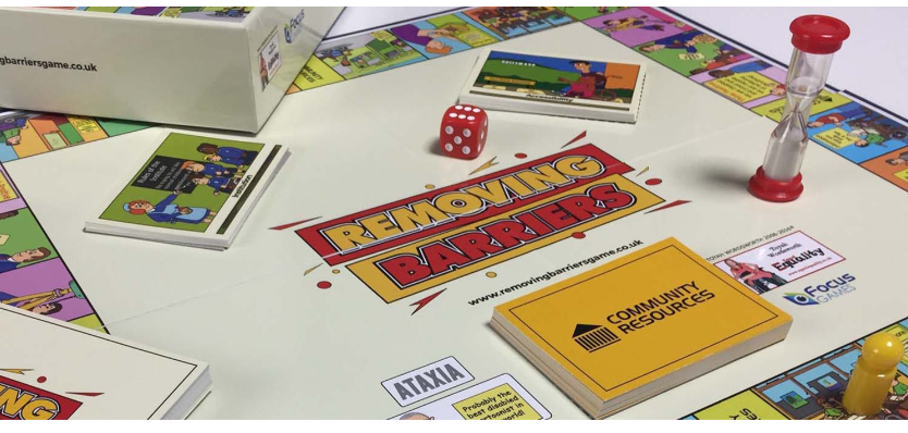 I’ve also created artwork and illustrations for use by individuals, including disabled Disabled Equality Trainers and disabled writers and artists. One example is a board game devised by Toyah Wordsworth and called Removing Barriers.